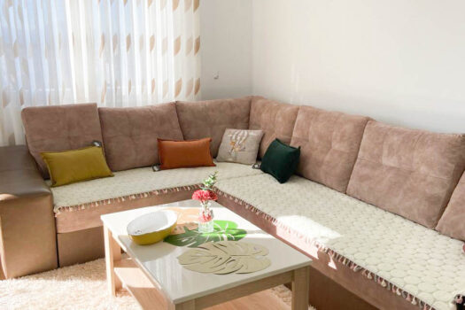 Struktura stana: ulazni hodnik, dnevni boravak, kuhinja i trpezarija, dvije spavaće sobe, kupatilo i terasa.