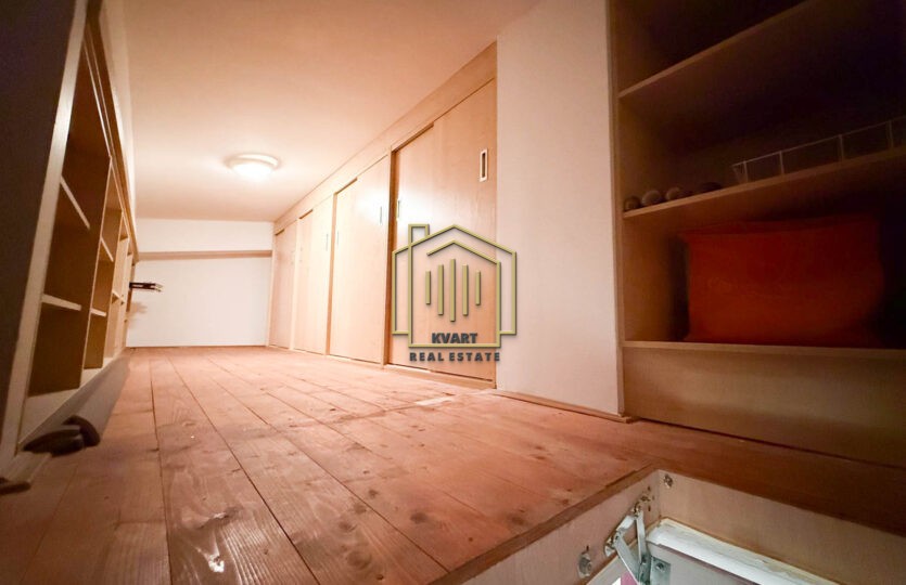 Posjeduje i veliki tavan 10m2 sa plakarima (nije uračunat u kvadraturu stana), koji može služiti kao ostavinski prostor.