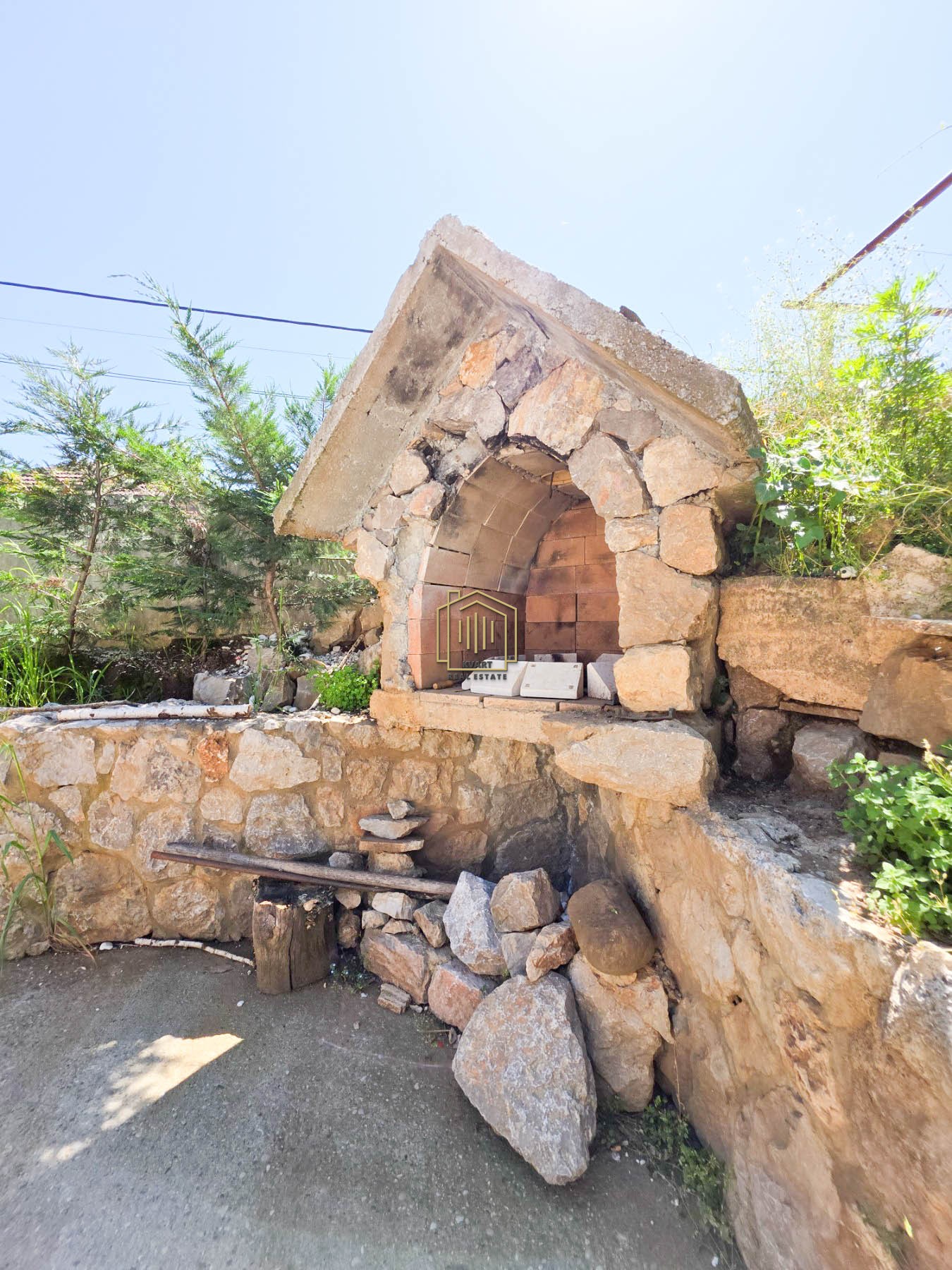 Na placu se nalazi pomoćni objekat površine 25m² i kameni roštilj.