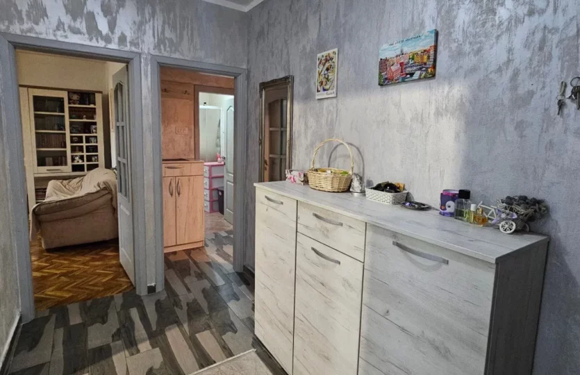 Struktura: dva hodnika, dnevni boravak, kuhinja i trpezarija, tri spavaće sobe, kupatilo, toalet i terasa.